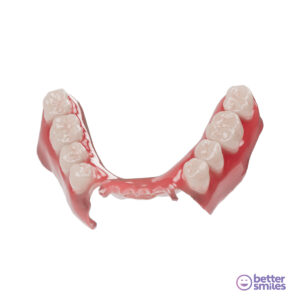 A BetterSmiles appliance requires 4 or more stable (not mobile) teeth in order for the appliance to remain secure. The BetterSmiles appliance has tiny clasps that hook around your remaining teeth. If you have less than 4 remaining teeth in an arch, the appliance may shift and lift out of position. If your remaining teeth are not stable (loose), the appliance may extract the loose teeth.
